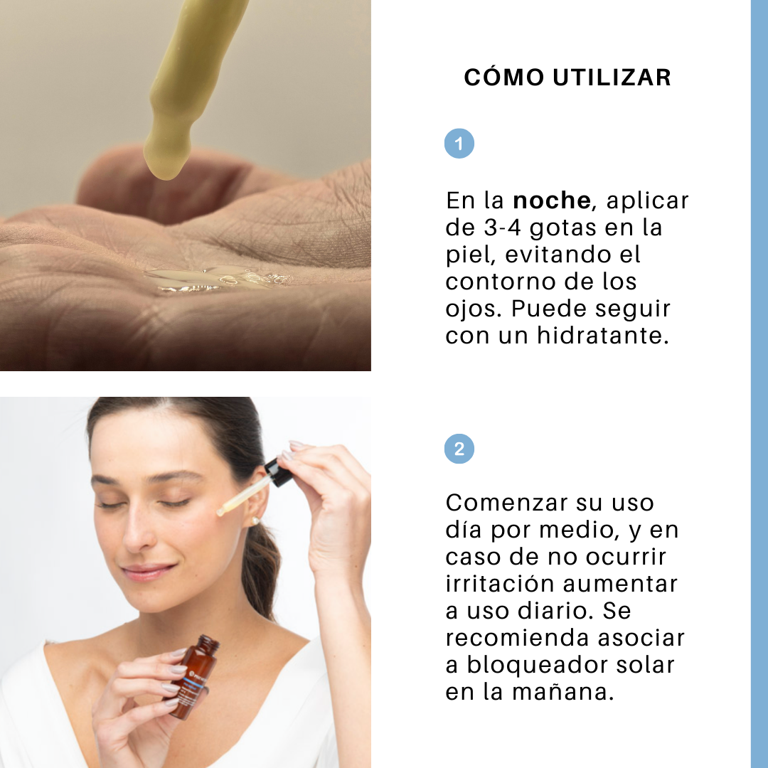 Tipo de piel: Todo tipo de piel, especialmente aquellas con signos de envejecimiento o propensas al acné.